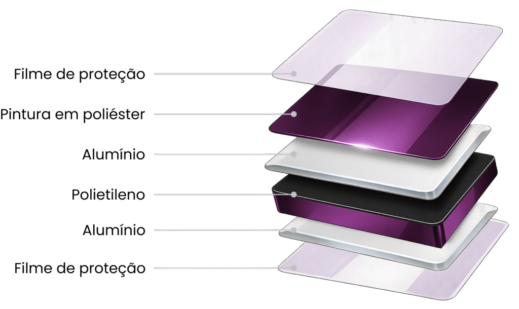 Nossos painéis de alumínio composto se destacam pela leveza, flexibilidade e facilidade de instalação, tornando o uso no dia a dia muito mais prático. Eles exigem poucos cuidados de limpeza e manutenção, oferecendo funcionalidade sem complicação.